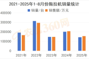 截至2025年9月12日,全国范围内共计公示补贴大中马力拖拉机14.42万台,申请使用的农机购置与应用补贴资金达22.67亿元,实现拖拉机销售额155.94亿元。与2024年1-8月份的公示销量相比,今年同期的公示销量下降了28.24%,补贴资金使用量减少了18.4%,销售额的降幅为24.8%。从数据中可以明显看出,今年1-8月份,大中马力拖拉机的补贴资金申请使用量和销售额的下滑幅度,均显著低于销量的下滑幅度。